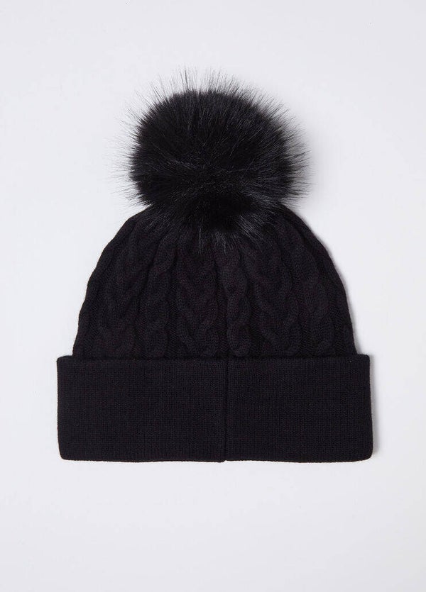 2F4054M0300 Beanie Maglia con Trecce e Ponpon
