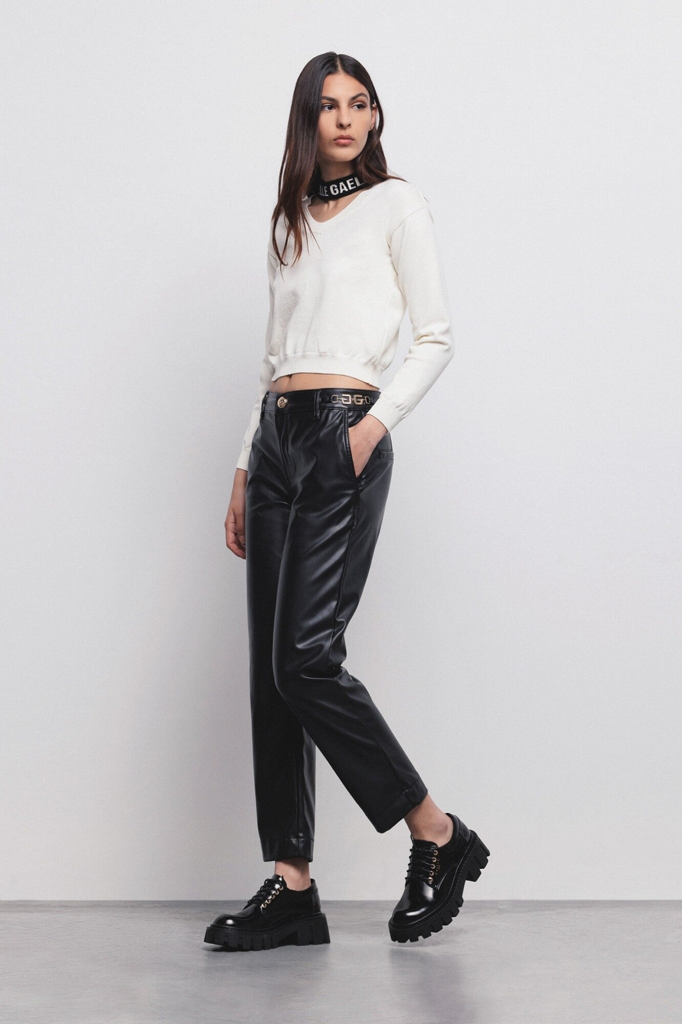 GAABW01177 Pantalone Chino Slim in Ecopelle
