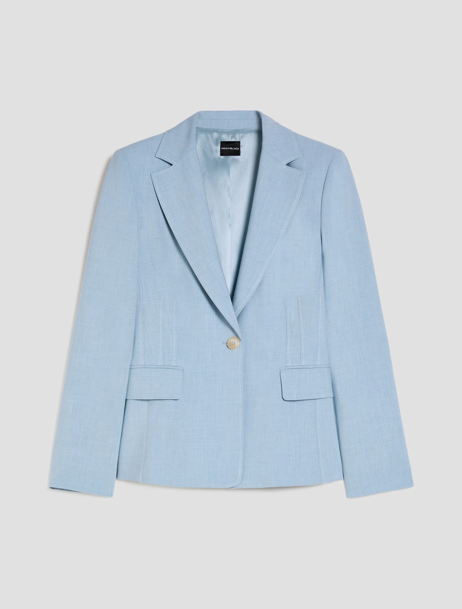 Pennellato sulla silhouette con sapienti tagli sartoriali, il blazer in tela chiné porta la primavera nel guardaroba.