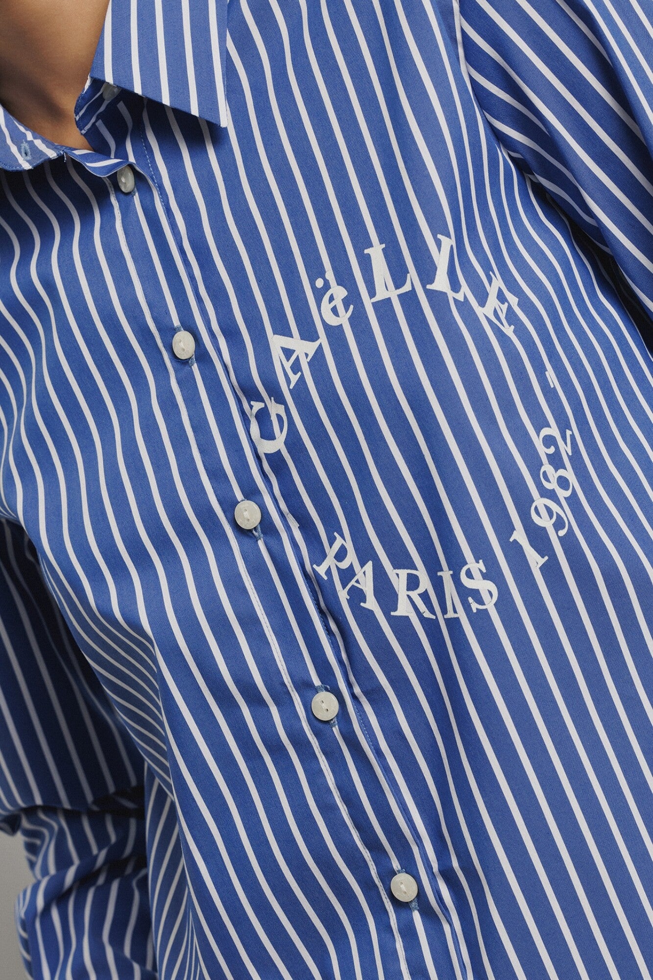 3892 Camicia con fondo irregolare in popeline bastonetto • Azzurro scuro