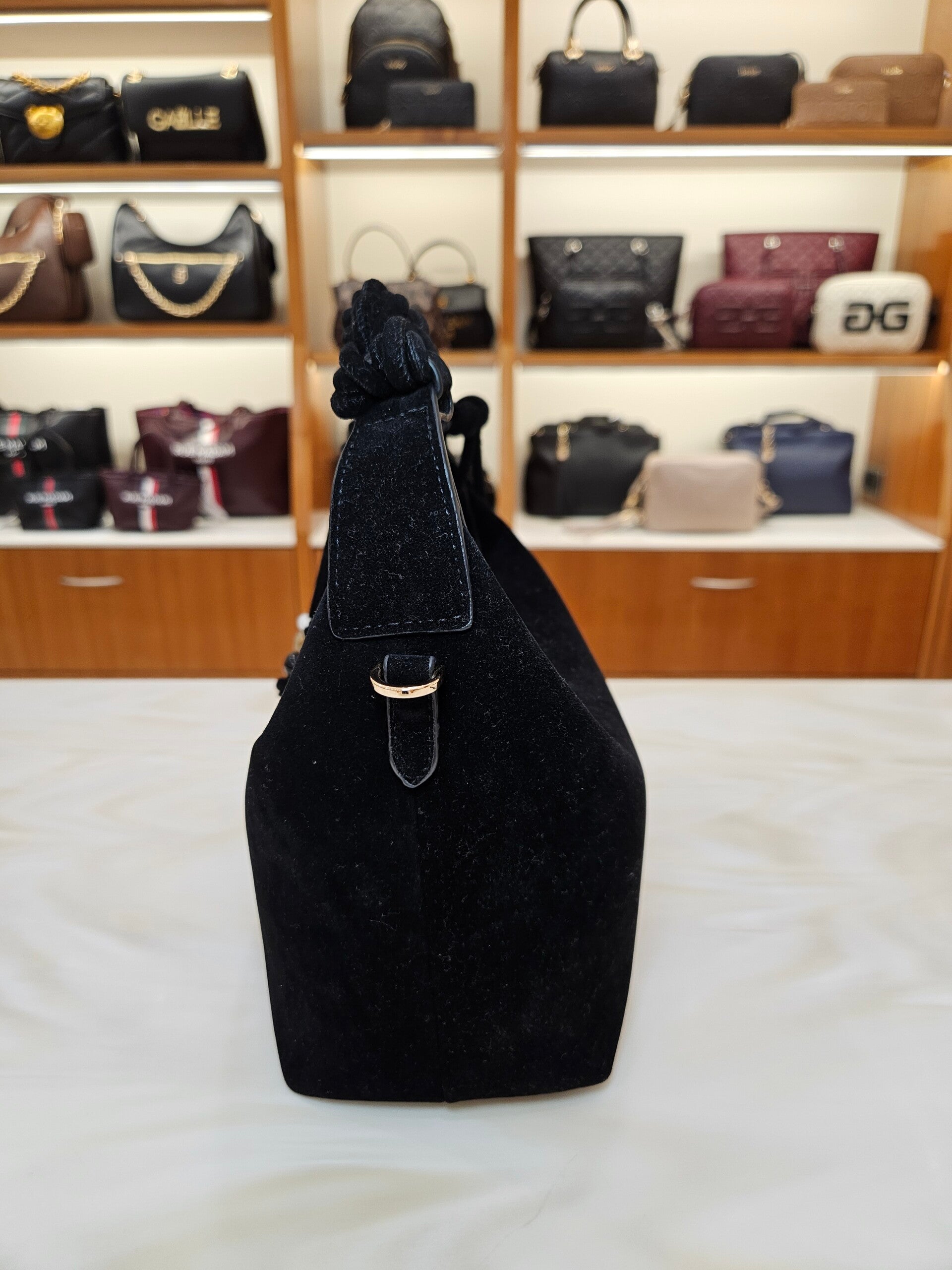 AVELINE è una borsa a mano dallo stile boho-chic, realizzata in morbida finta pelle scamosciata, che le conferisce un aspetto raffinato e naturale. Il dettaglio intrecciato del manico, arricchito da cordoncini con perline, dona un tocco elegante. Dotata di una tracolla regolabile e removibile, offre versatilità d’uso, permettendo di indossarla sia a mano che crossbody. Il design compatto e le finiture curate la rendono l’accessorio perfetto per aggiungere un tocco di originalità a qualsiasi outfit.