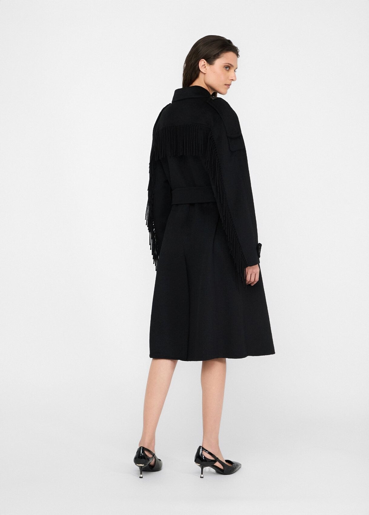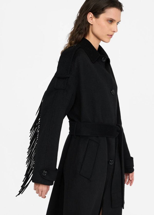 Liu Jo Trench Nero in Lana con Frange