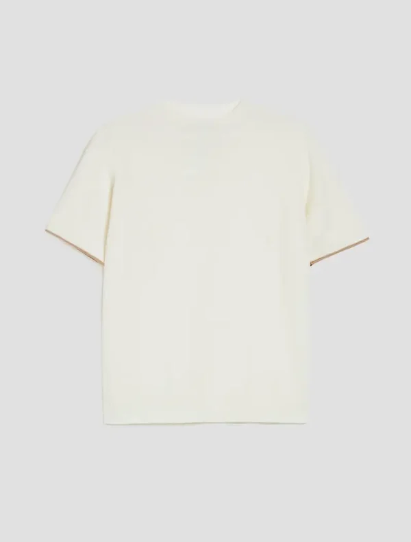 Essenziale e chic, la maglia taglio T-shirt in pura lana sottile è il perfetto passe-partout di mezza stagione.