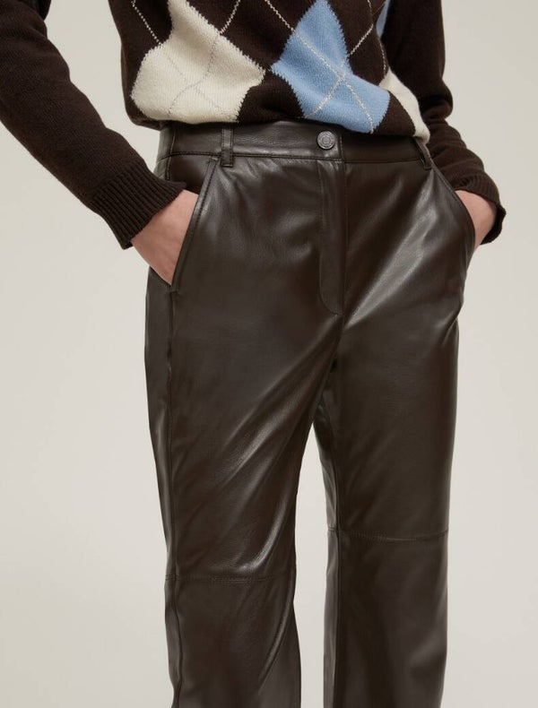 Vibrazioni Seventies e fit aggiornato, i pantaloni dal finish spalmato daranno tutta la loro verve agli outfit quotidiani.