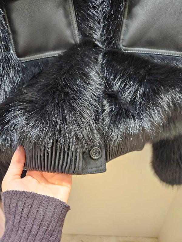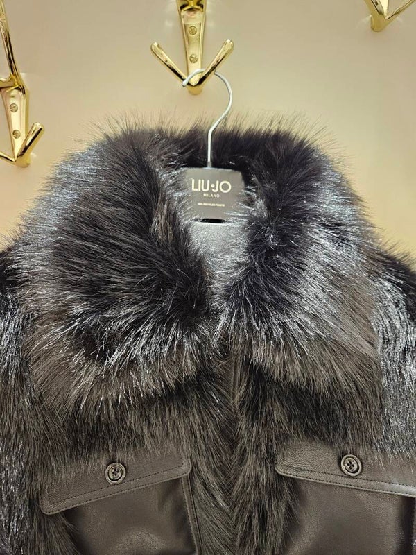 Liu Jo Ecopelliccia Nera con Dettagli Ecopelle
